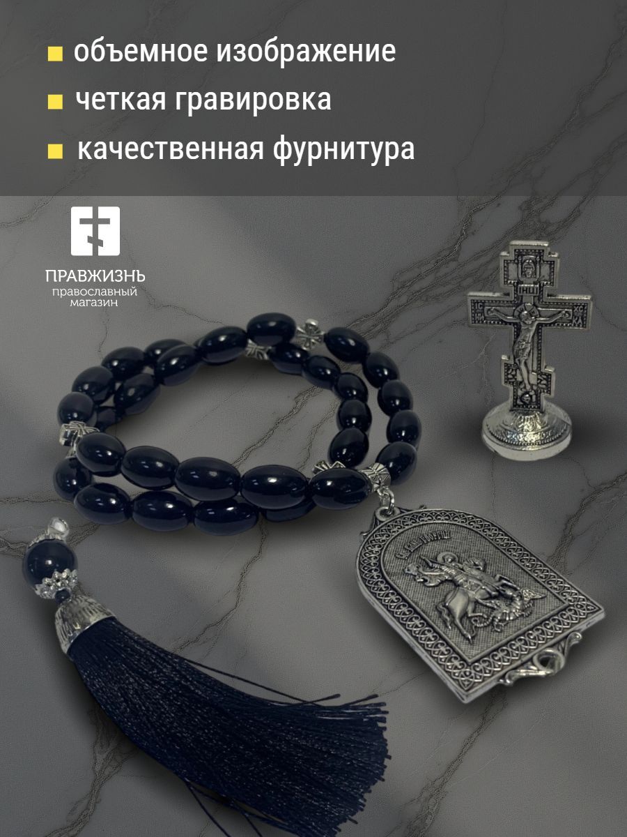 Набор для водителя Четки с иконой Георгий Победоносец и Крест на подставке