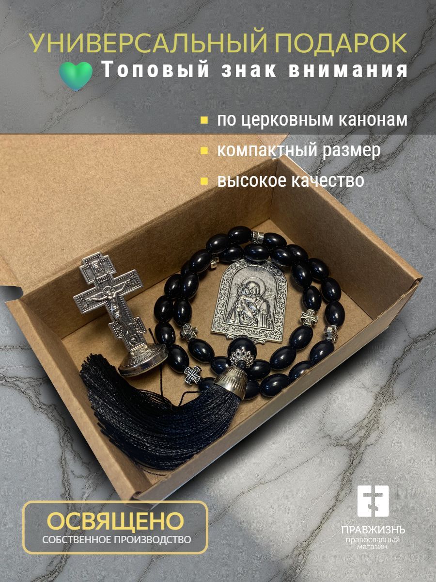 Набор для водителя Четки с иконой Владимирская БМ и Крест на подставке