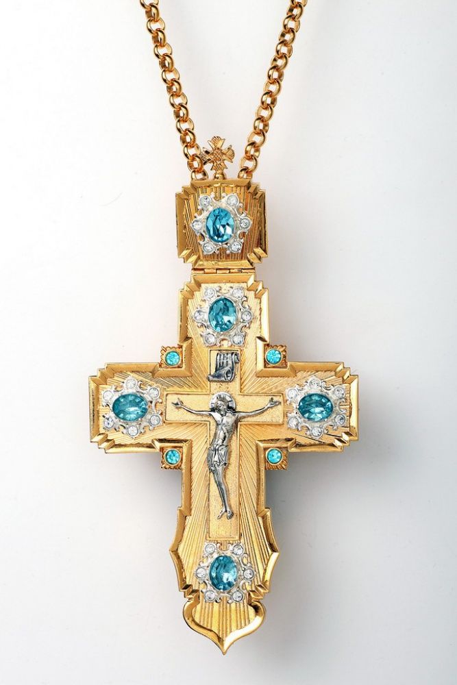 Крест наперсный №106 литьевое распятие, гильяш / золочение, серебрение