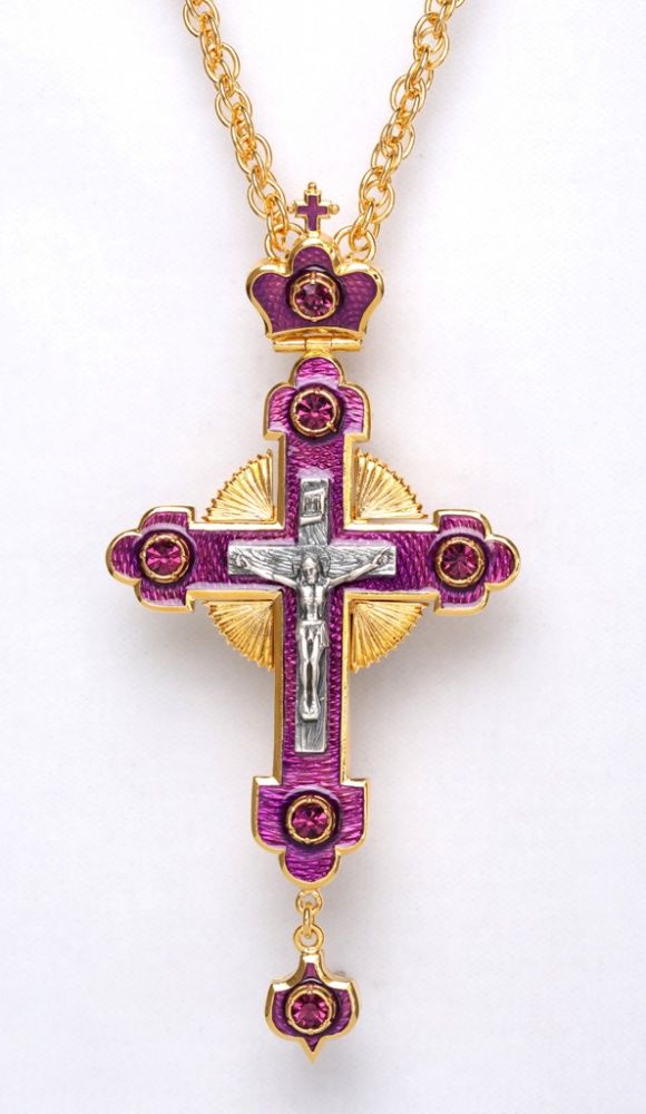 Крест наперсный №14 / золочение / серебро литьевое распятие, эмаль (УИН)