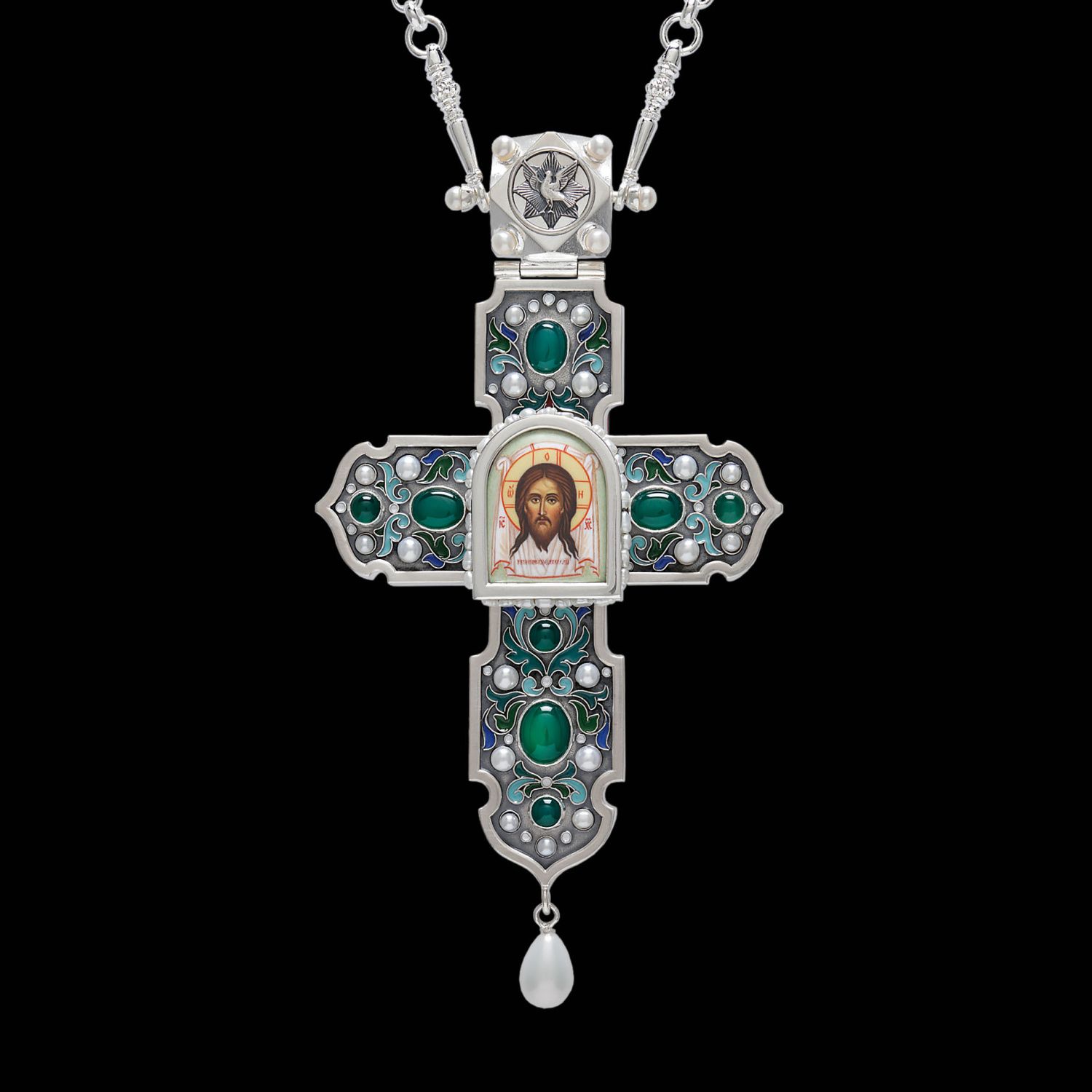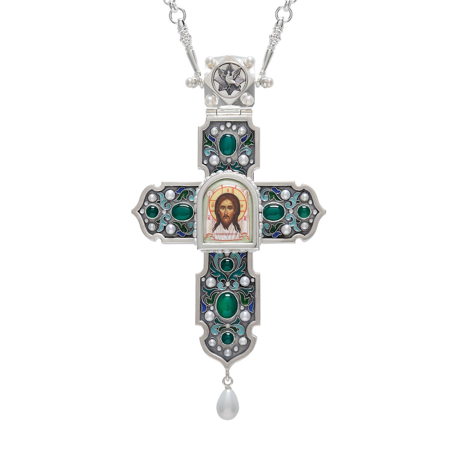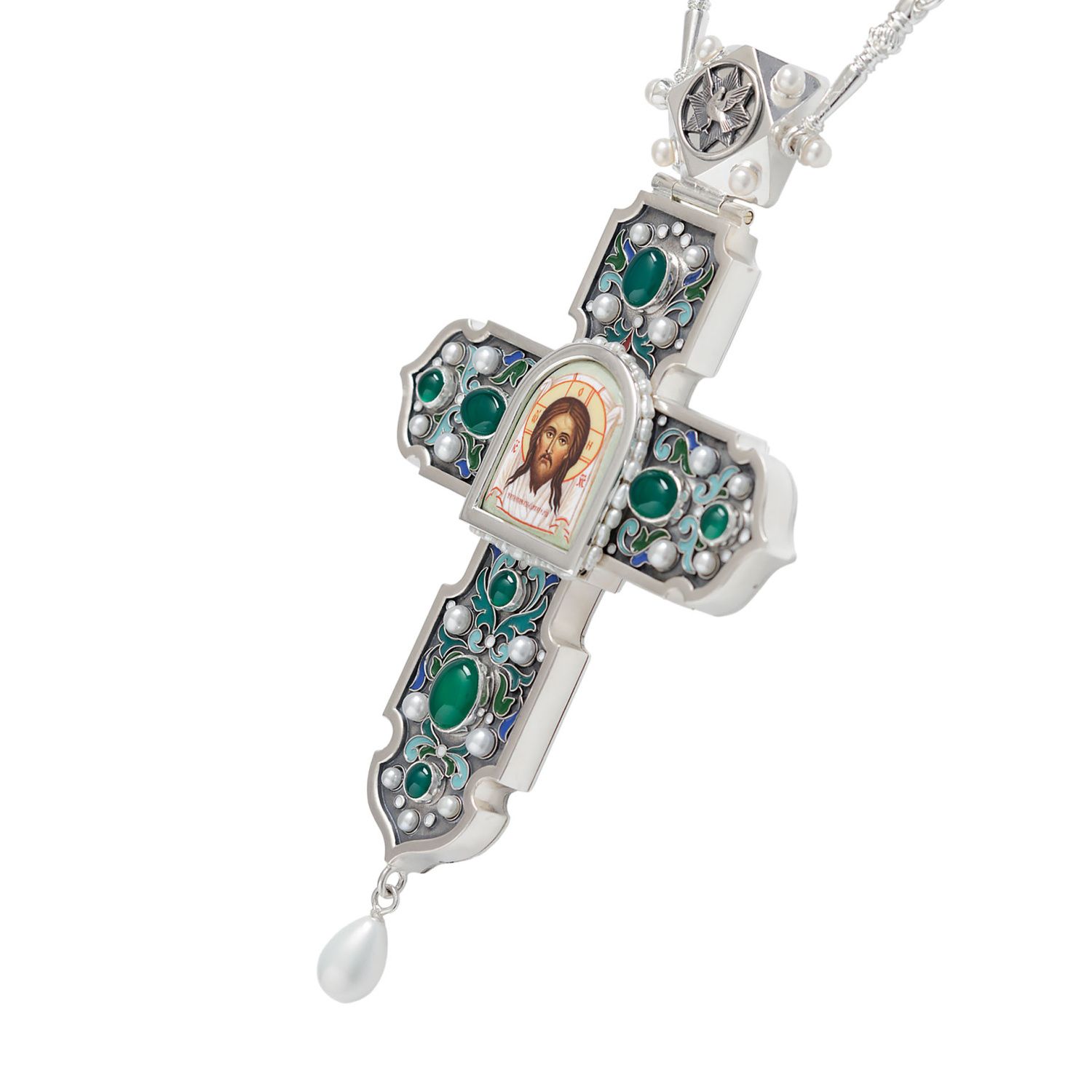 Крест наперсный №1415 / Фианиты деколь, эмаль / серебрение