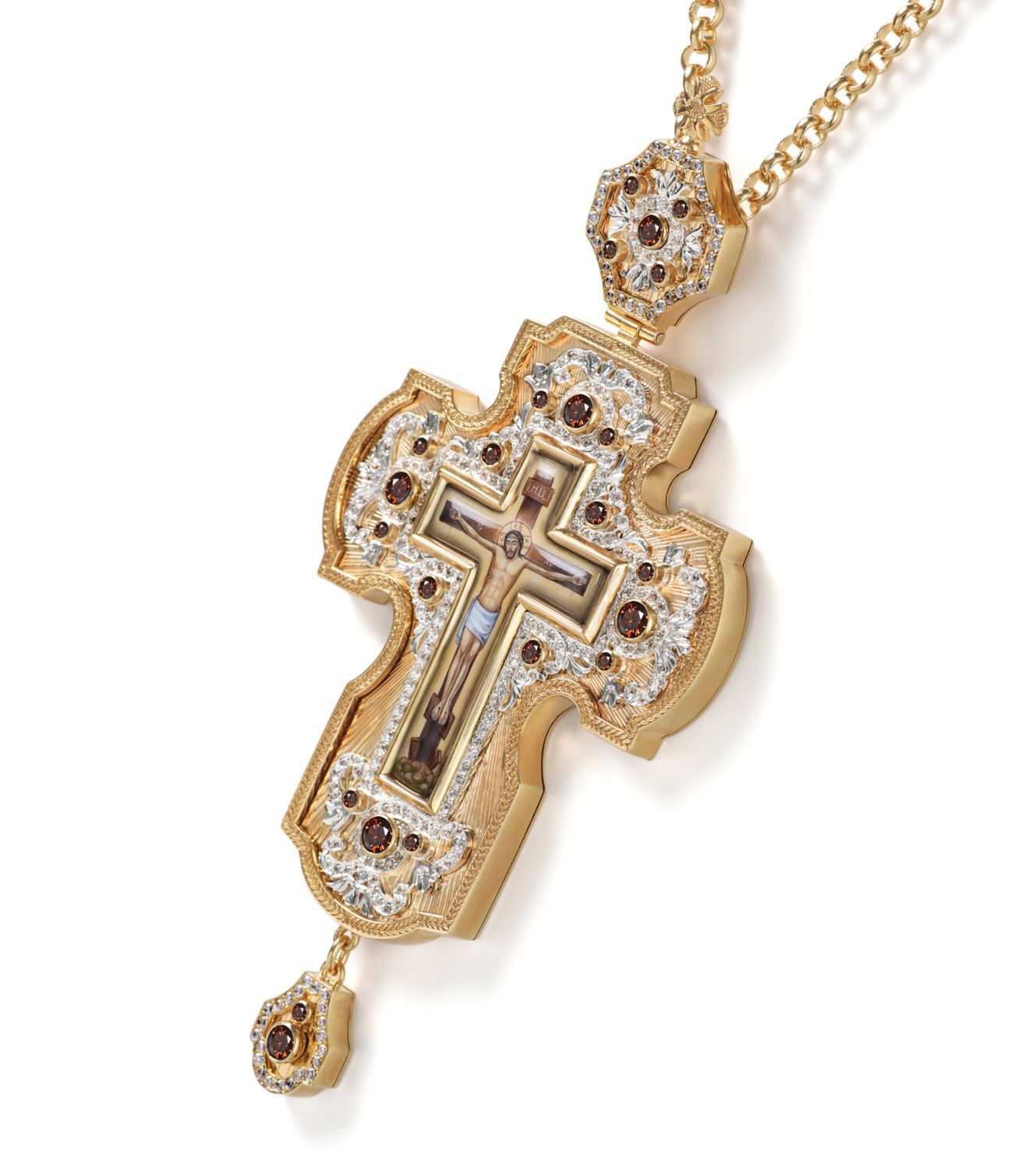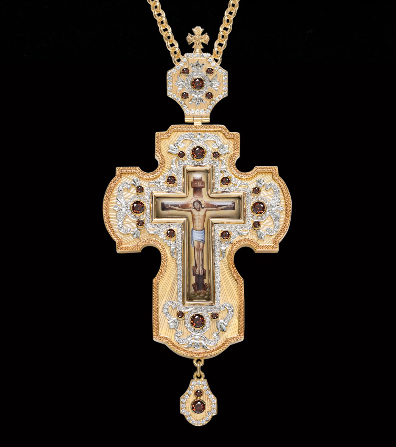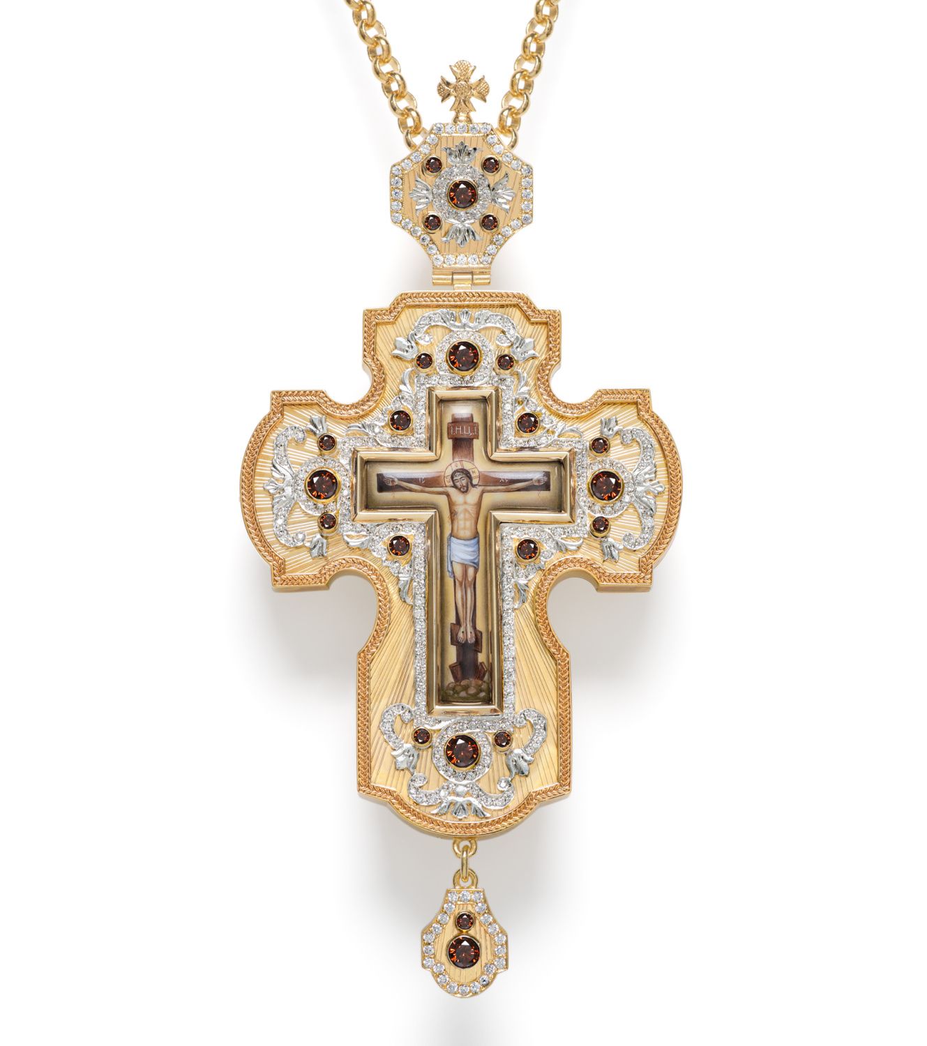 Крест наперсный №200 / Фианиты гильяш / золочение, серебрение