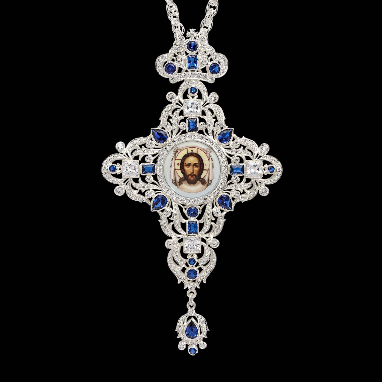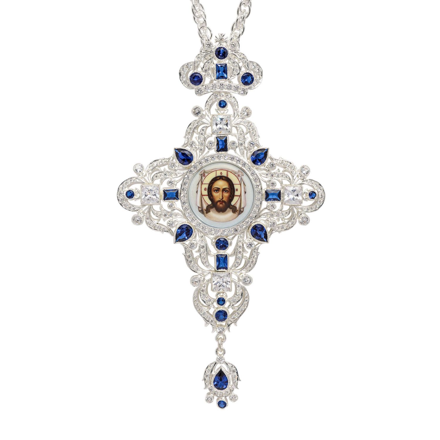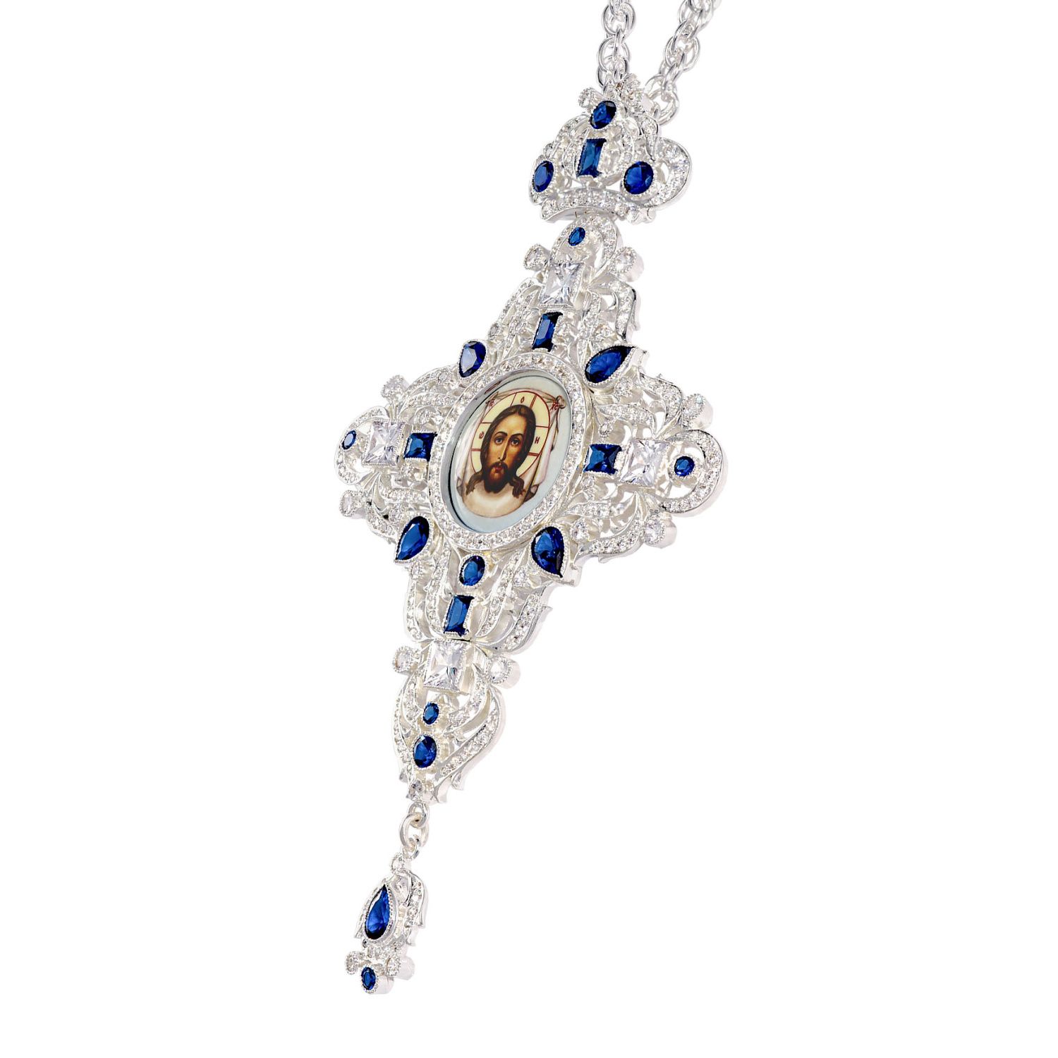 Крест наперсный №213 / Фианиты деколь / серебрение
