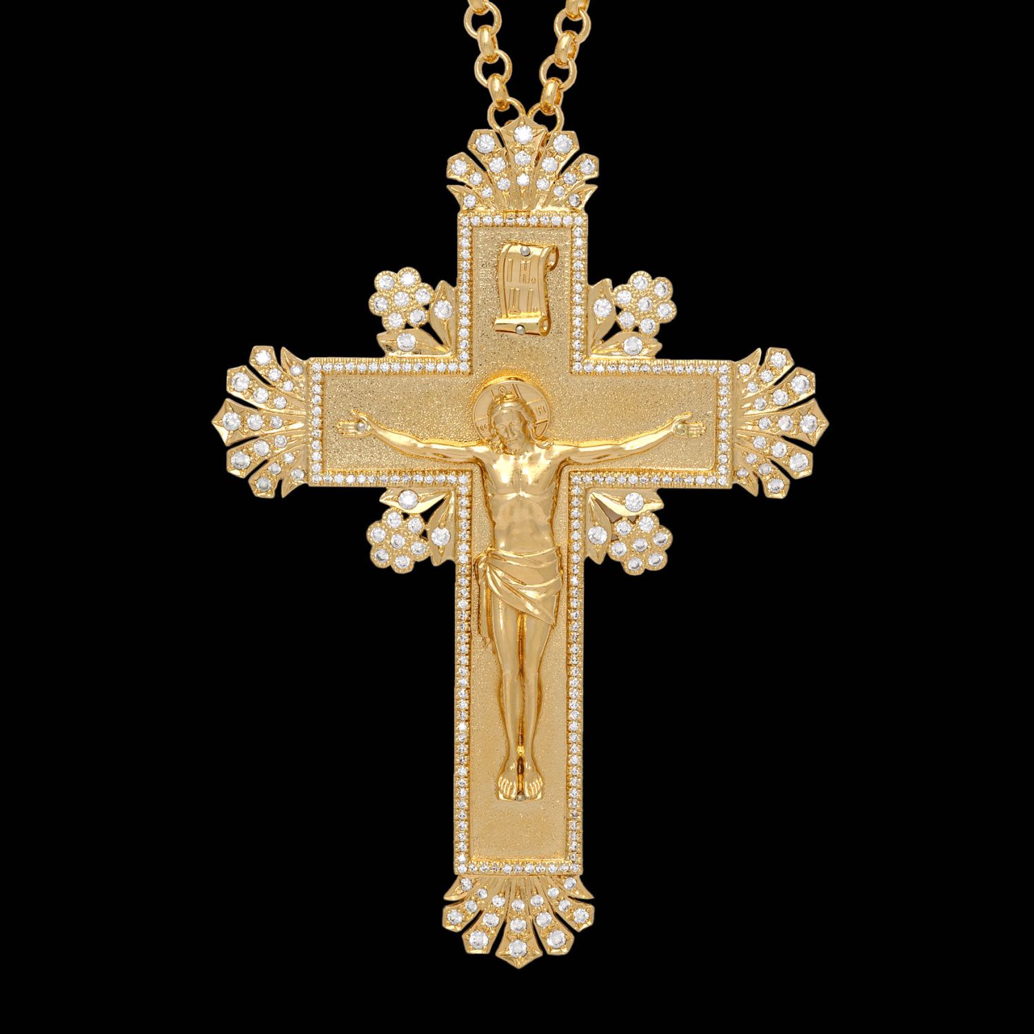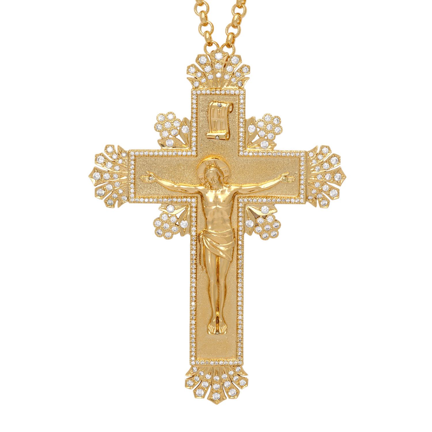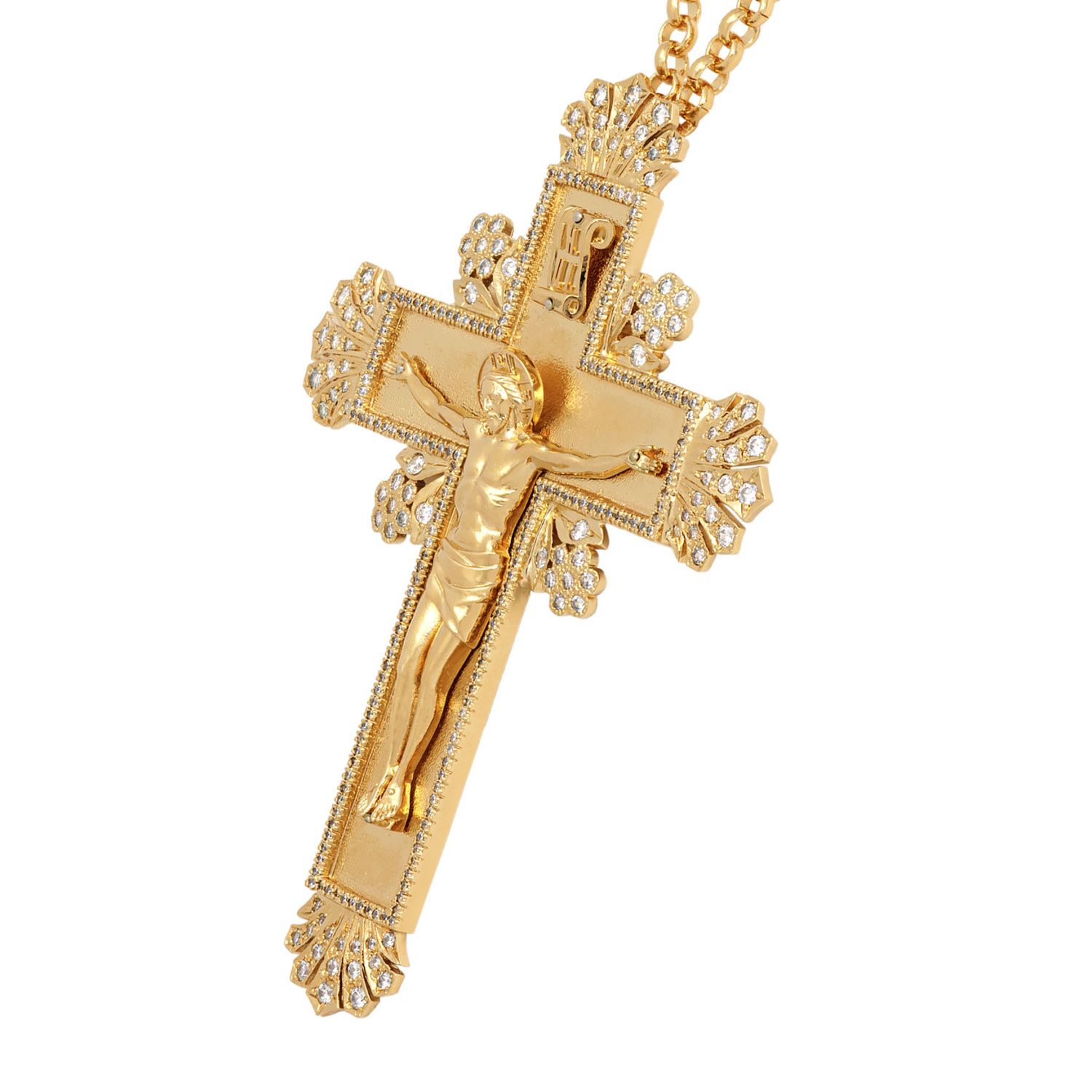 Крест наперсный №223 / Фианиты литьевое распятие / золочение