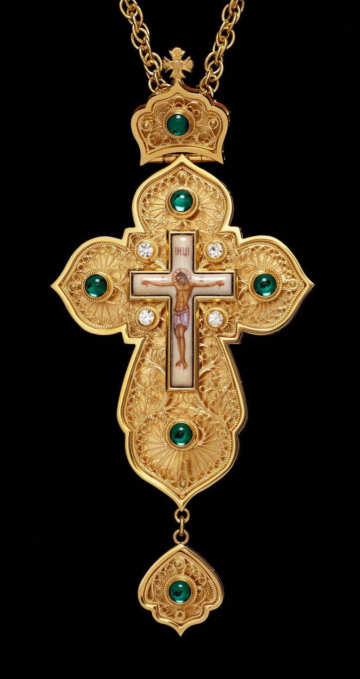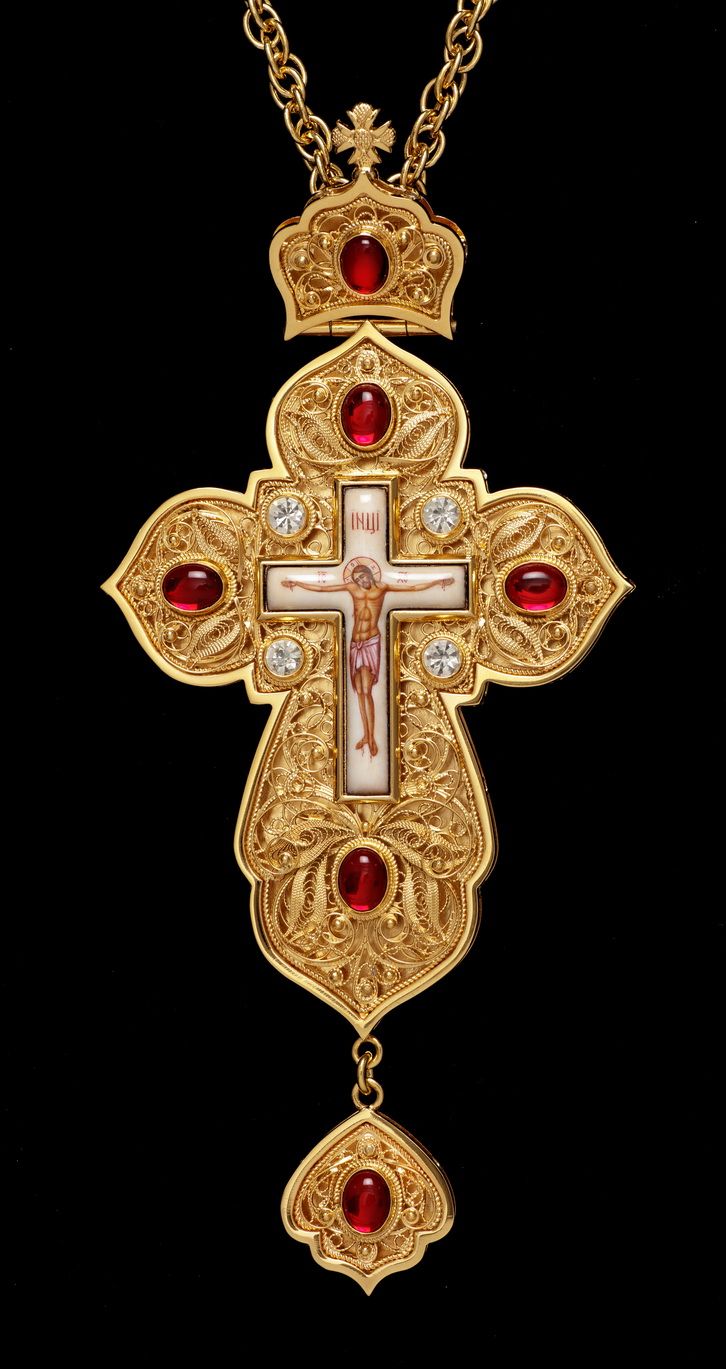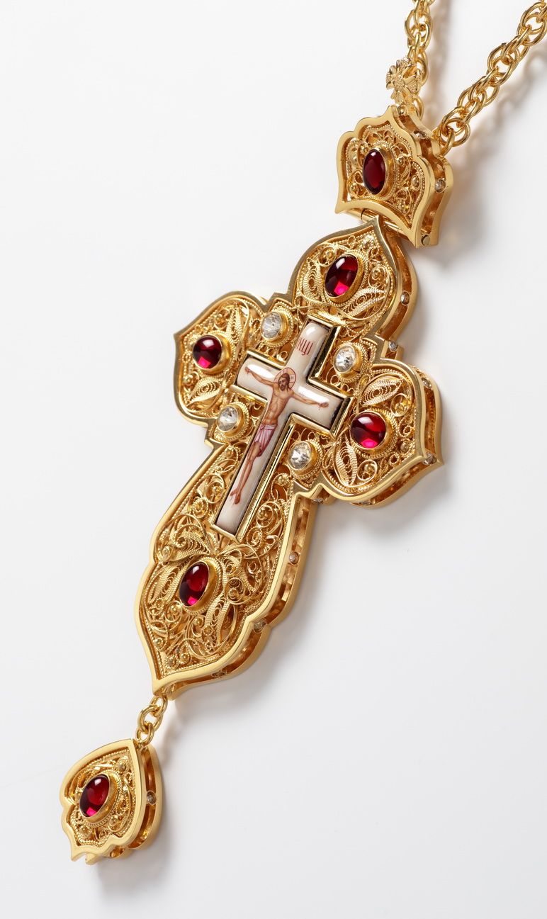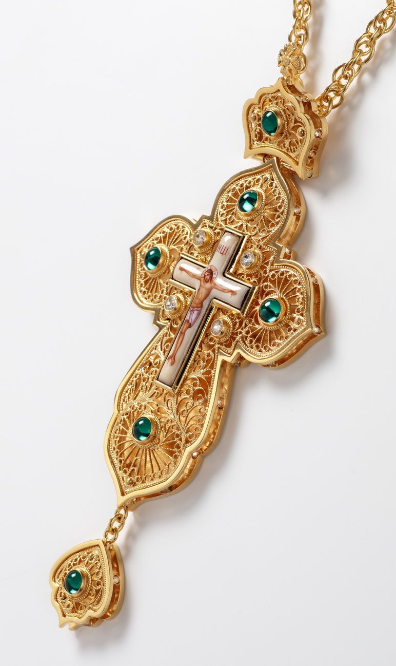 Крест наперсный филигрань №0015 двойной рант финифть / золочение