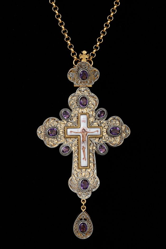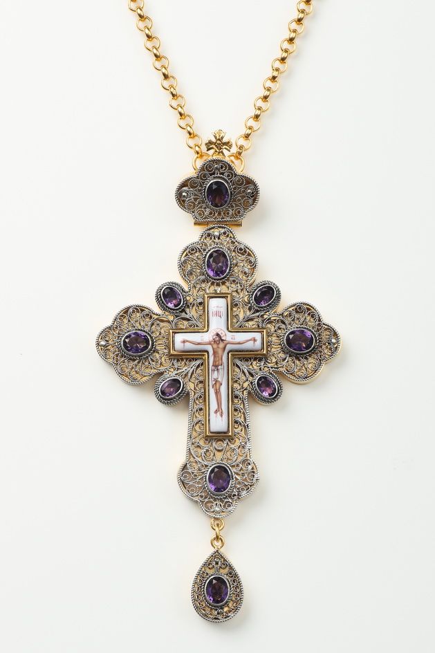 Крест наперсный филигрань №0021 финифть /золочение,серебрение/