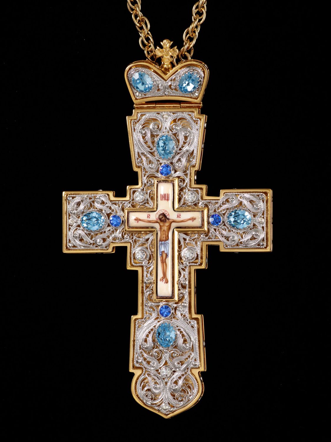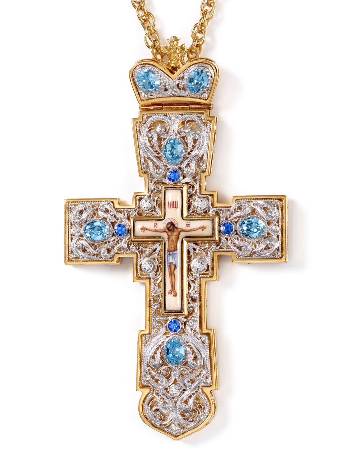 Крест наперсный филигрань №0038 двойной рант, финифть / золочение, серебрение
