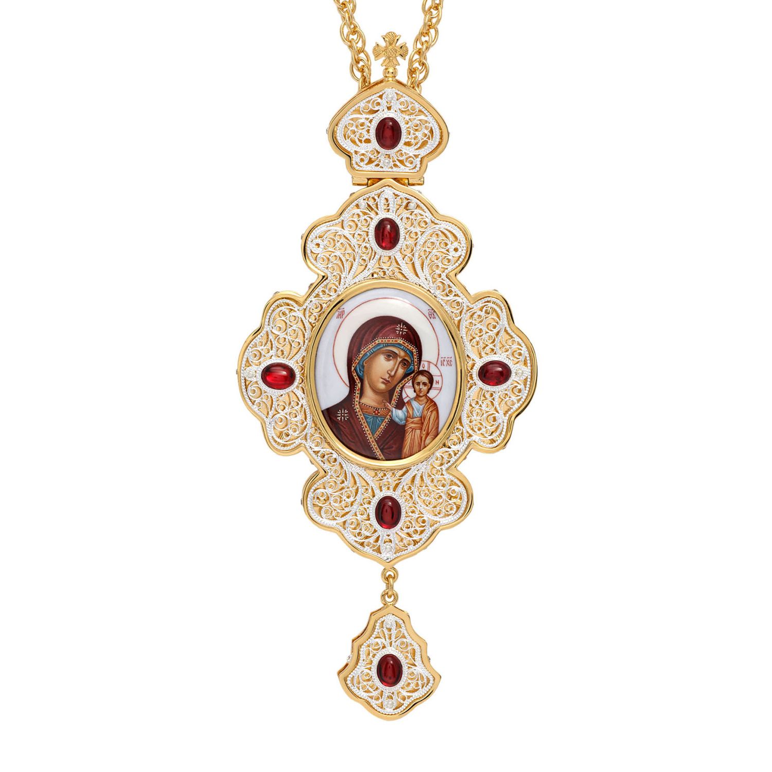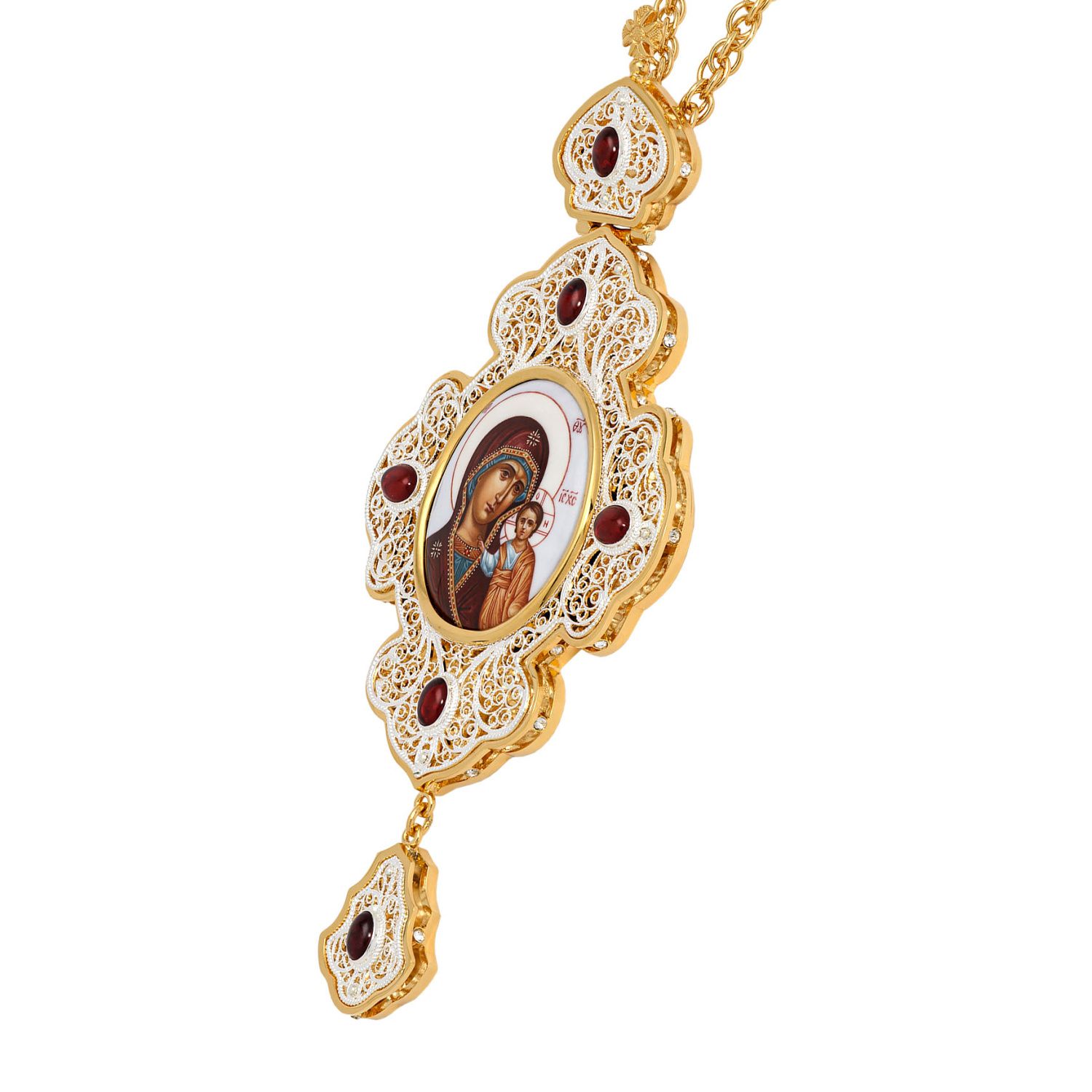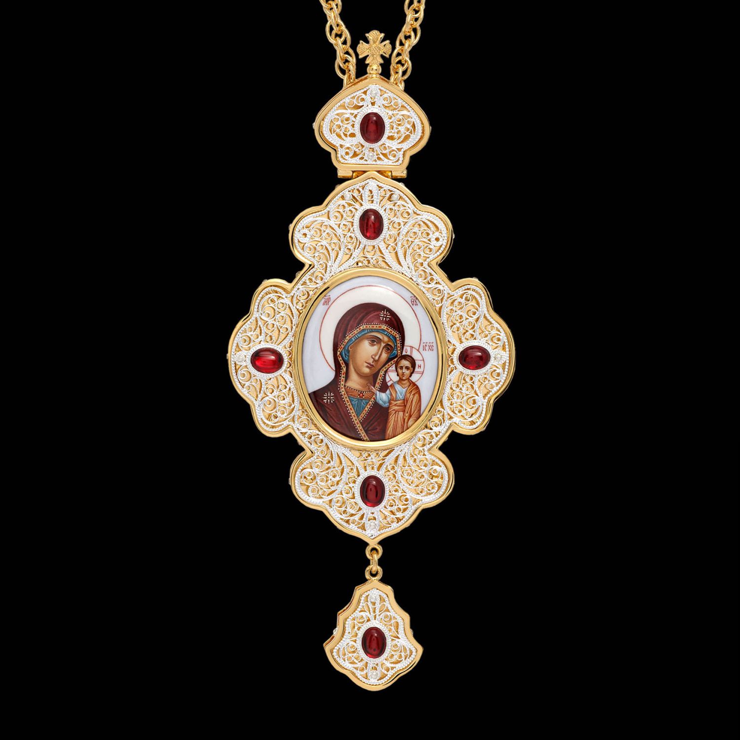 Панагия филигрань №0012 двойной рант финифть / золочение, серебрение / Казанская БМ