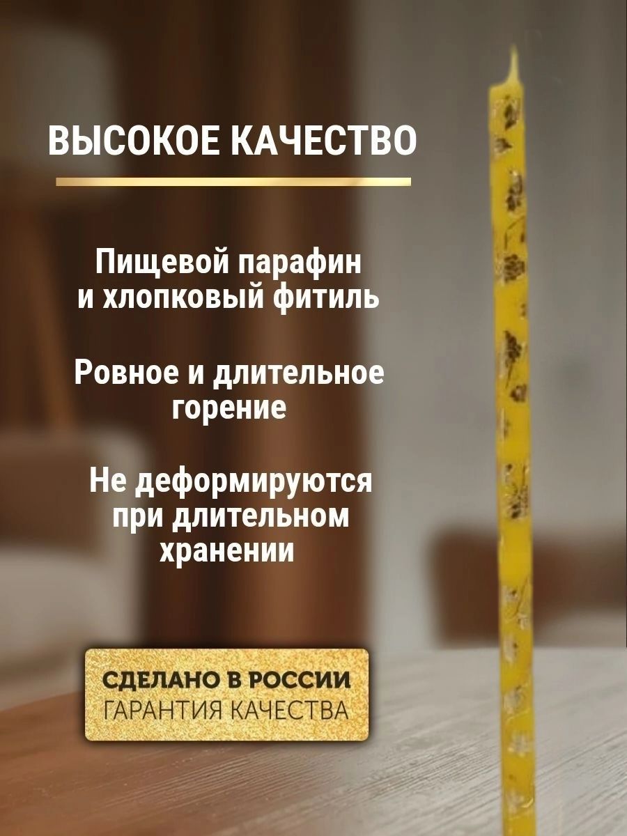 Свечи праздничные №20/40 (уп 25шт), ЖЕЛТЫЕ (Золотая лоза)