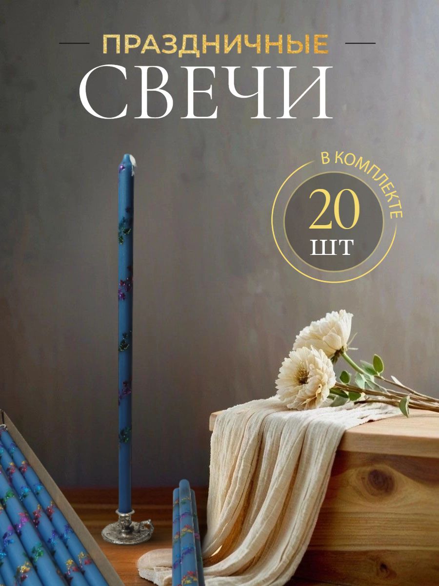 Свечи праздничные №8 (уп 20шт), ГОЛУБЫЕ (Радужная лоза)