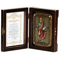 Икона Святого Павла и Ангела Хранителя в виде бархатного складня с багетной рамкой станет запоминающимся даром по случаю крещения и именин. Прекрасно подойдёт для дарения по случаю этих праздников и настольный образок в дубовом футляре.