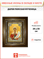 Немаловажно и наличие подарочной упаковки с прилагающимся сертификатом. Это особенно актуально, если вы покупаете икону для имени Дарья на крещение: благолепно оформленный подарок подчеркнёт торжественный момент единения человека с Господом.
