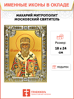 - Икона Макария Митрополита Московского, которому молятся о защите страны от войн и разрушения, укреплении христианства, спасении души, поддержки в житейских нуждах. Во время его служения духовность и культура страны достигла небывалого расцвета. Святитель обладал даром прозорливости. Несмотря на высокое положение, жил в аскезе, соблюдая строжайший пост и смирение.