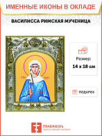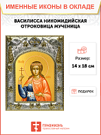 По каталогу православного интернет-магазина ПравЖизнь Вы можете купить онлайн наиболее известную икону Василисы Никомидийской, юной мученицы, день памяти которой приходится на 3/16 сентября. Пройдя через жуткие физические испытания, 9-летняя девочка силой своей христианской веры показала такие чудеса, что правитель Никомидии Александр принял христианство. Цена на икону Василисы Никомидийской указана для стандартного исполнения и формата.