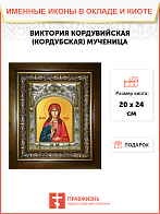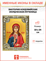 Созданная с использованием лучших сортов тщательно подготовленной древесины, с традиционным покрытием левкасом и паволокой, украшенная бисером и камнями именная икона Виктории ручной работы станет лучшим даром на крещение, именины. При заказе воспользуйтесь возможностью подобрать подходящий размер и форму понравившейся святыни.