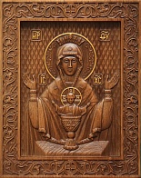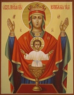 Иконография этого Богородичного лика относится к типу Оранта. Заступница на нём изображена молящейся, с поднятыми вверх руками. Христос в чаше перед ней - олицетворение Таинства причастия и неиссякаемой Божией благодати, которой хватит на всех. Перед образом просят: