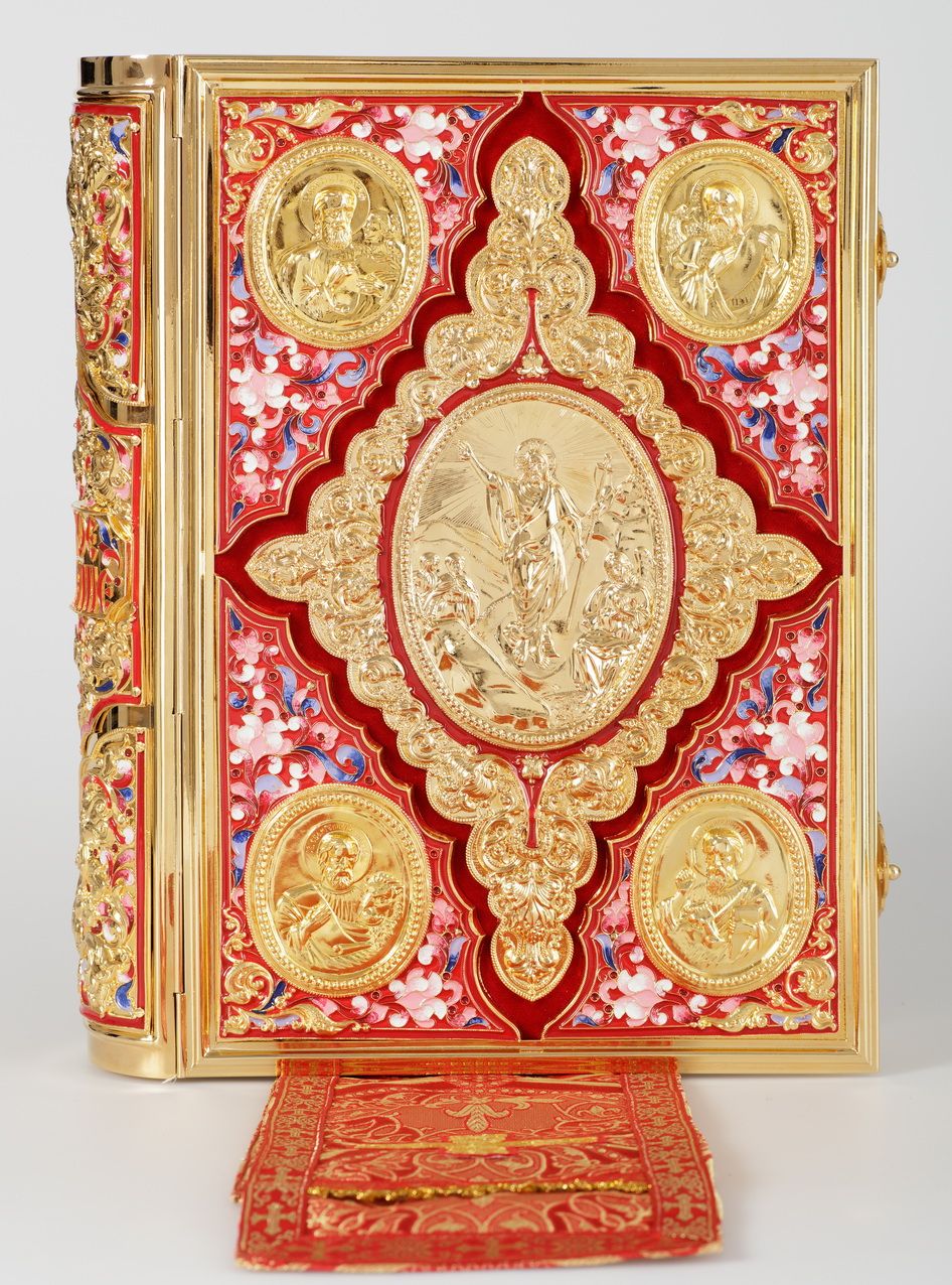 Евангелие 360*240 напрестольное №2 накладки золочение эмаль (с закладкой)