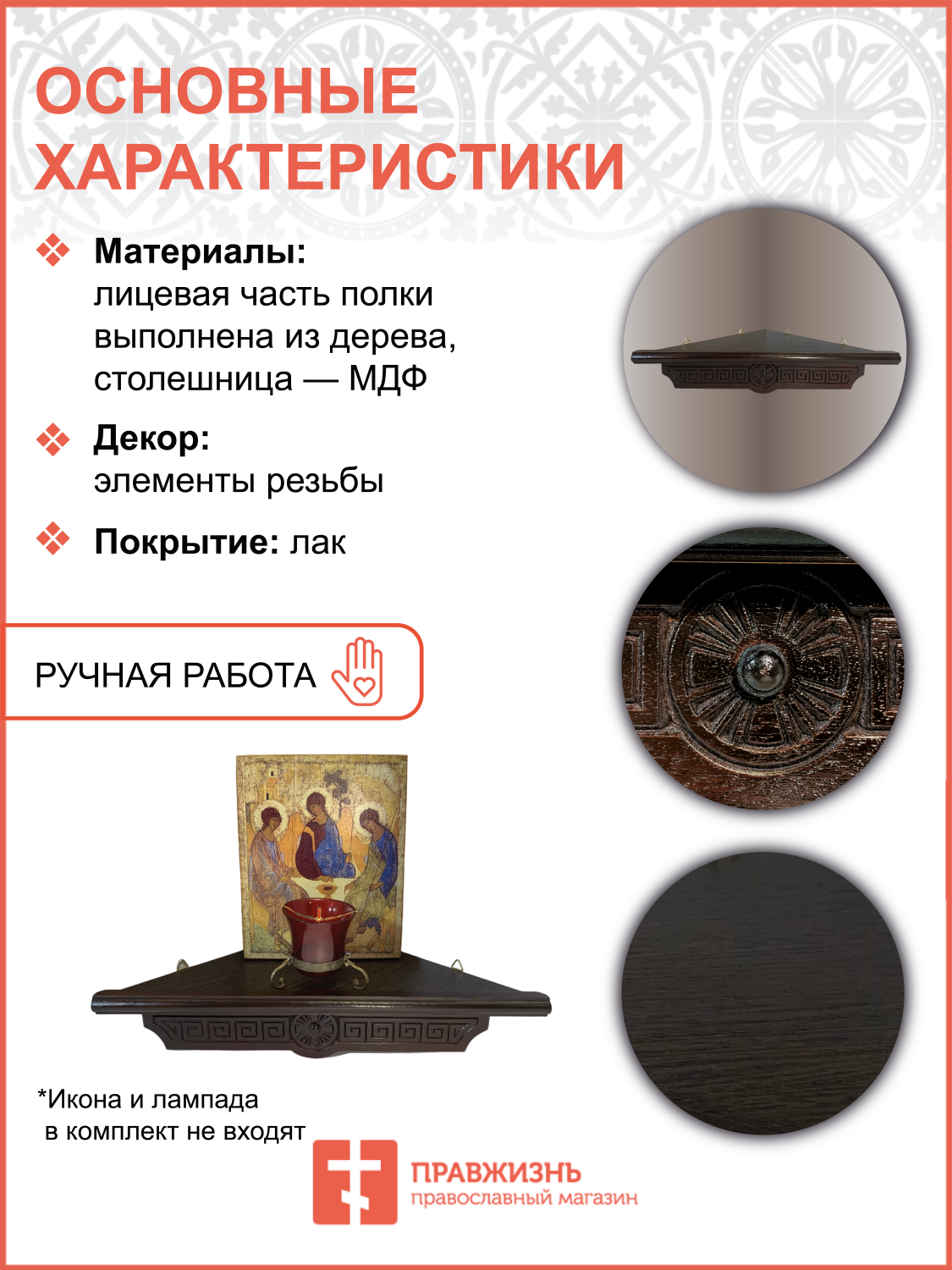 Иконная полка угловая деревянная одноярусная малая Греческая