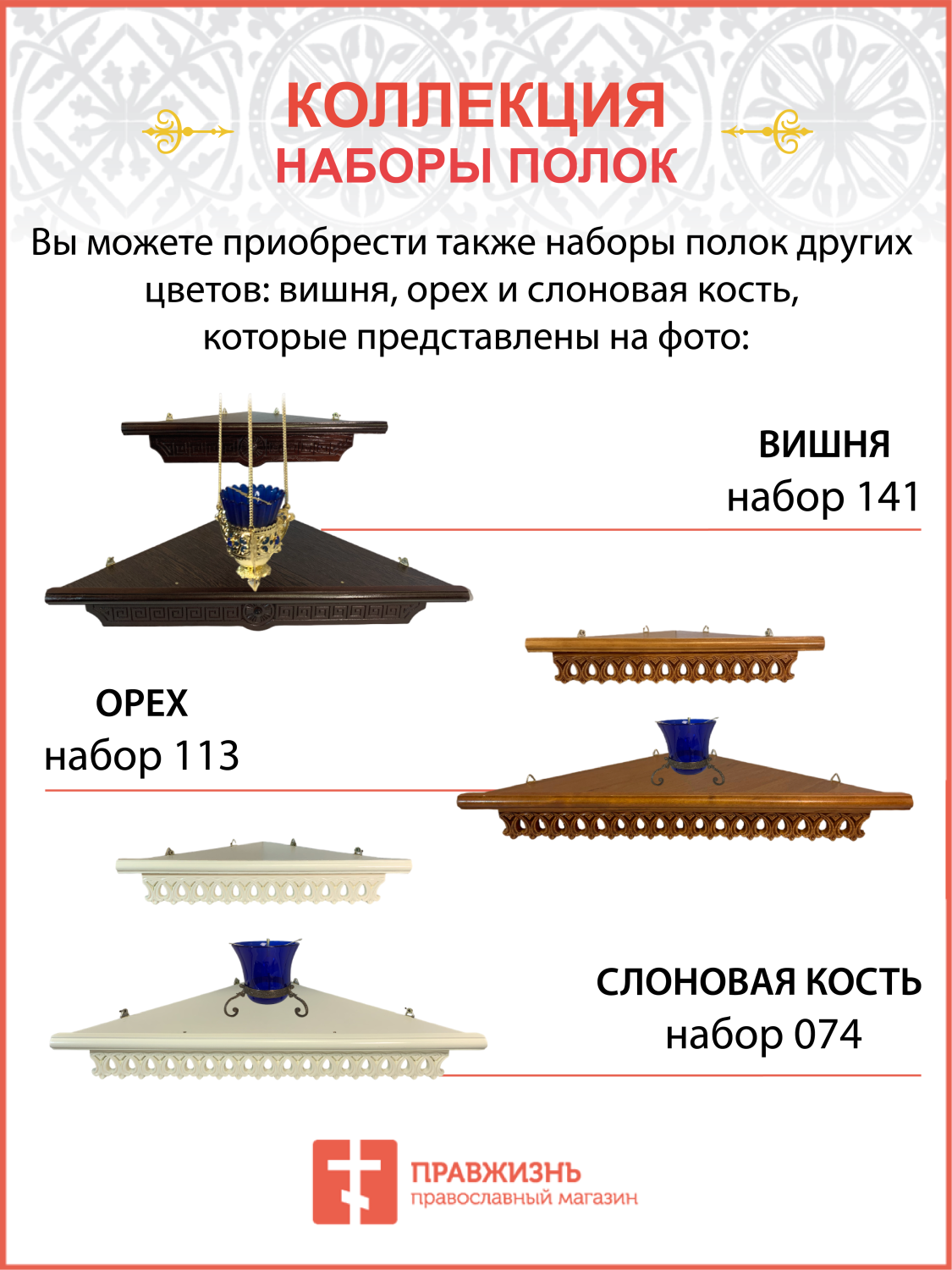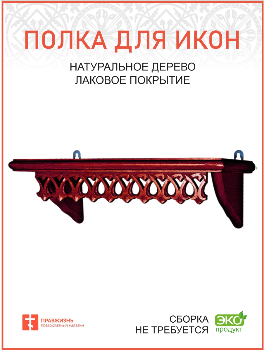 Полка для икон на стену 1 ярусная прямая малая ажурная