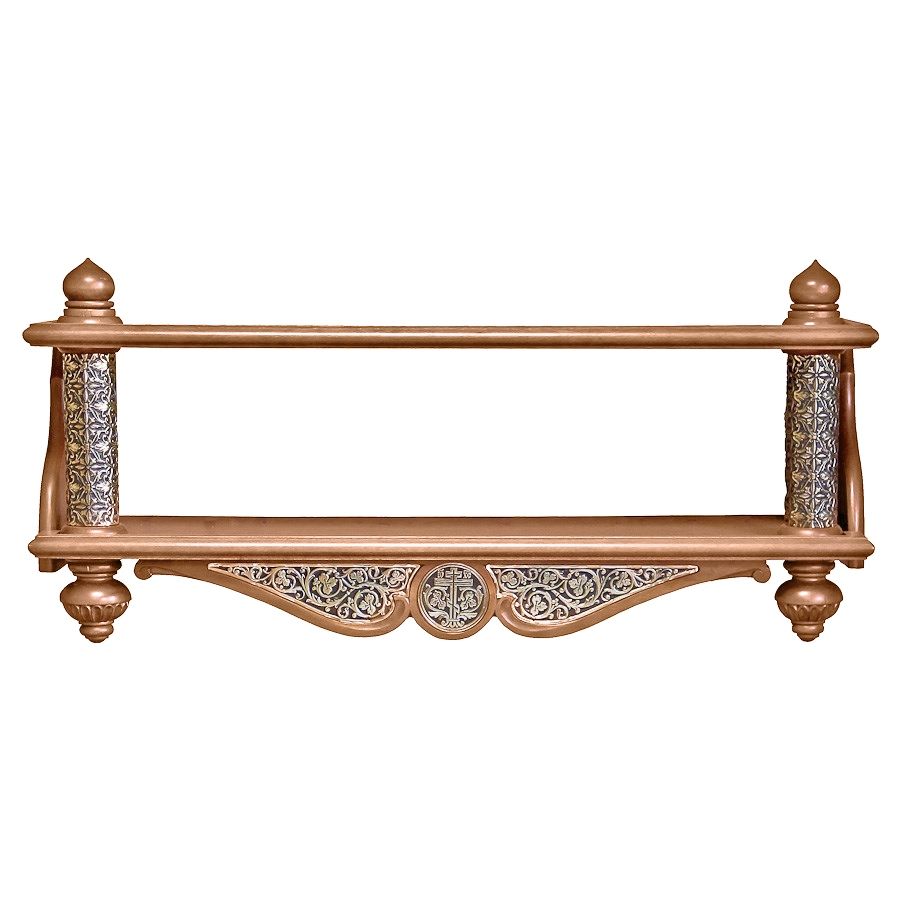 Полка под иконы 2-х ярусная прямая из дерева с басмой