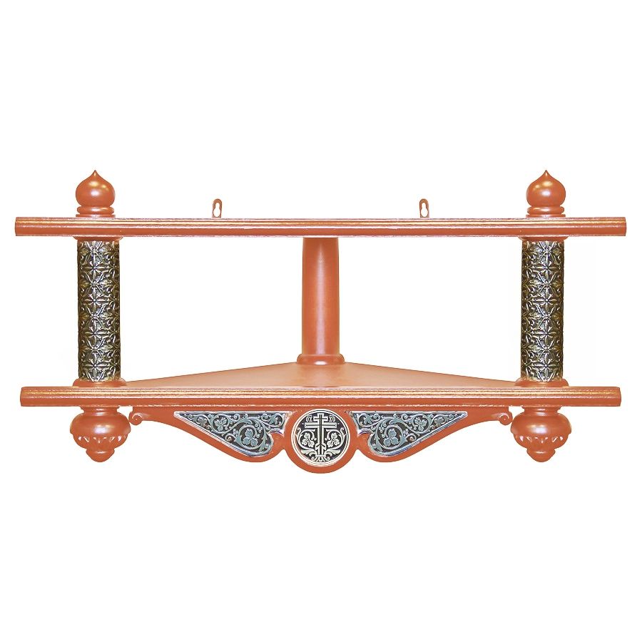 Полка для икон 2-х ярусная угловая с басмой низкая