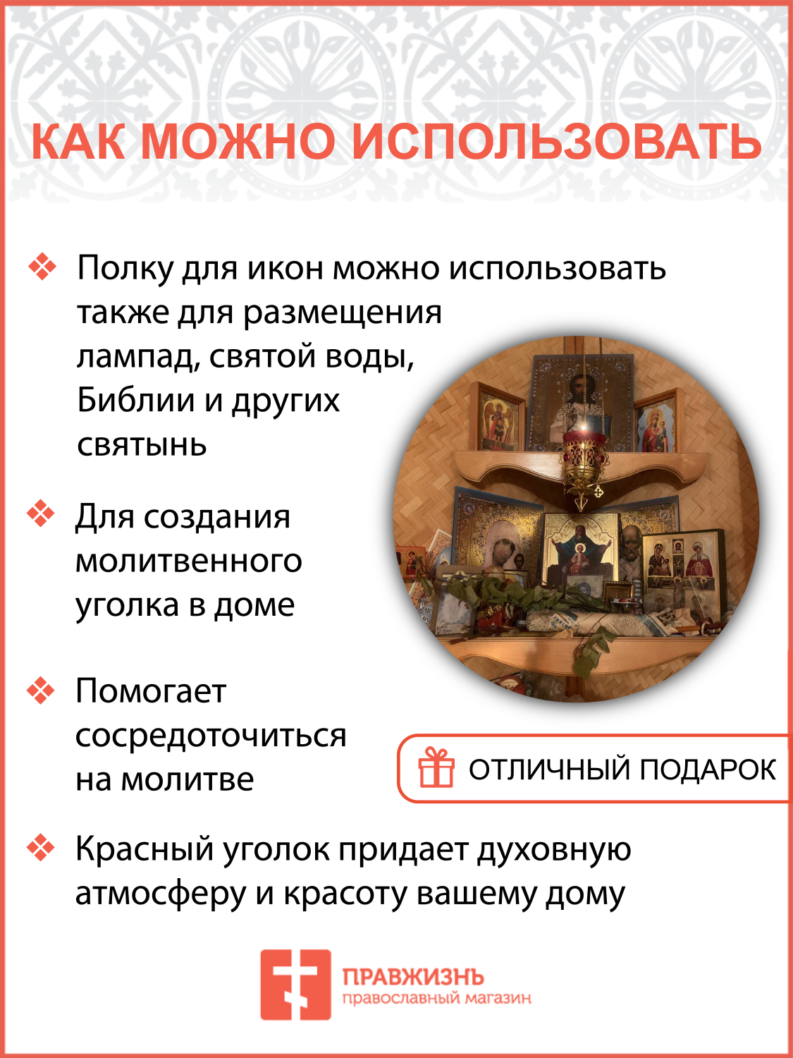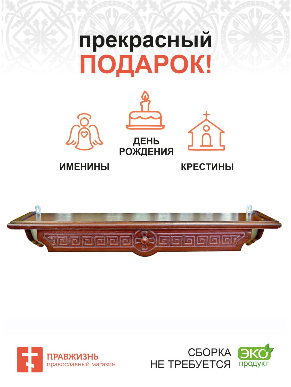Полка для икон одноярусная прямая удлиненная Греческая